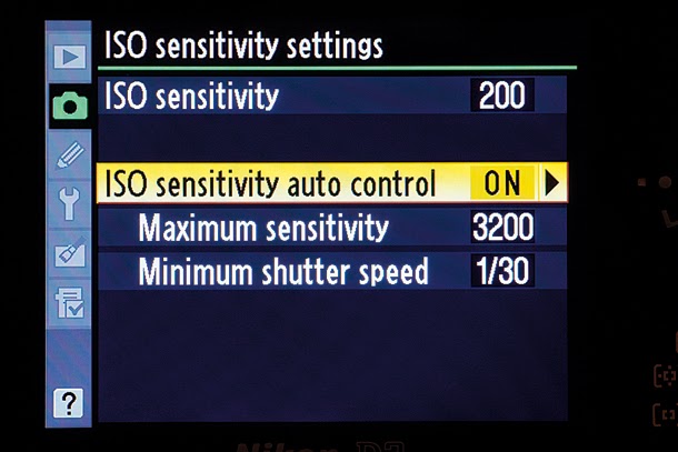 Using a low sensitivity setting ensures high image quality, but it may require a slow shutter speed or large aperture setting. To save having to worry about this in the early days, set the camera to its automatic ISO setting.