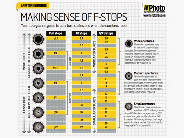 Digital SLRs offer a choice of up to three aperture scales, with full-stop, half-stop or third-stop increments (head to your camera’s Custom Functions menu to choose your preference). We prefer third stops as it enables fine-tuning of exposure.